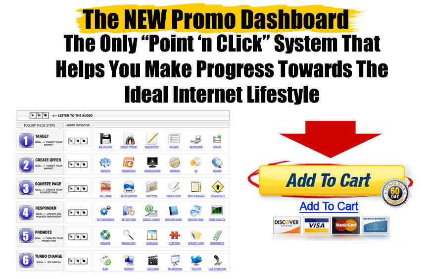 If you're tired of not knowing what to do or how to do it, if you're fed up with Squeeze pages that get opt-ins at anemic rates, if your emails don't sell, if you don't know how to do audio, video, webinars and Twitter, or you think "it's just not for you", then here's what my new Promo Dashboard will do for you: